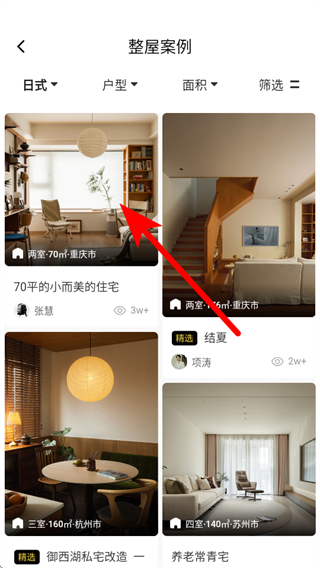4、在日式風格案例列表中點擊目標案例,進入詳情頁查看設計內容。