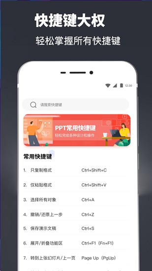ppt模板庫(kù)app覆蓋各類使用場(chǎng)景,滿足不同用戶的制作需求,軟件支持精準(zhǔn)查詢所需模板,選中后可直接套用,無(wú)需復(fù)雜設(shè)計(jì)就能讓ppt呈現(xiàn)高大上的視覺效果,這種便捷的使用方式大幅節(jié)省制作時(shí)間,有效提升辦公效率,是日常辦公、學(xué)習(xí)中制作ppt的優(yōu)質(zhì)輔助工具,喜愛的朋友不妨下載體驗(yàn)。