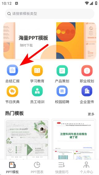 1、打開PPT模板類APP,我們可以先選擇需要分享的模板類型。