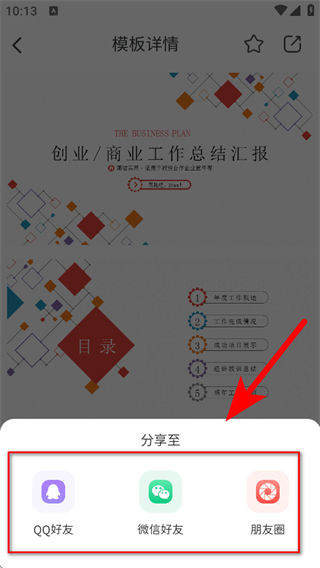 4、在彈出的分享選項(xiàng)中,選擇渠道將模板分享給別人。
