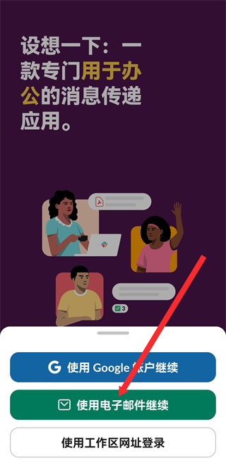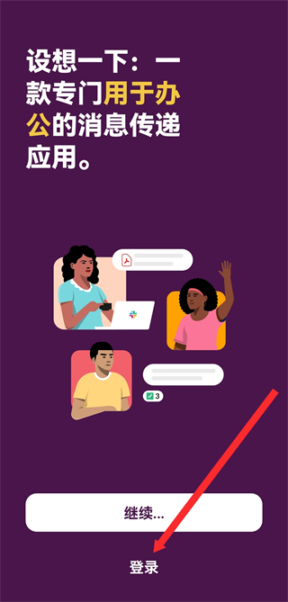 1、打開Slack應(yīng)用,我們需要頁面中的點擊登錄按鈕。