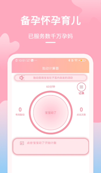 2、可以記錄寶寶的活動情況,輕松保存每一次胎動,一手掌握寶寶的健康狀況;