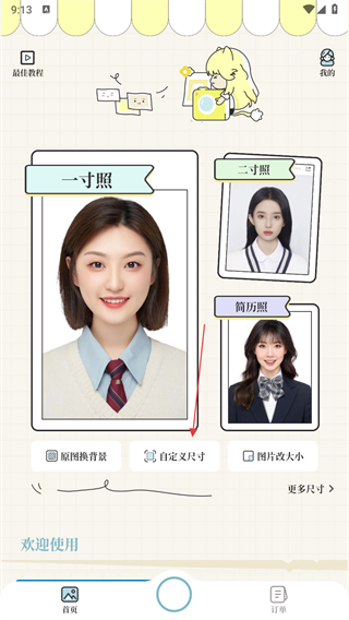 1、打開愛證件應(yīng)用,點(diǎn)擊自定義尺寸選項(xiàng)。