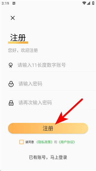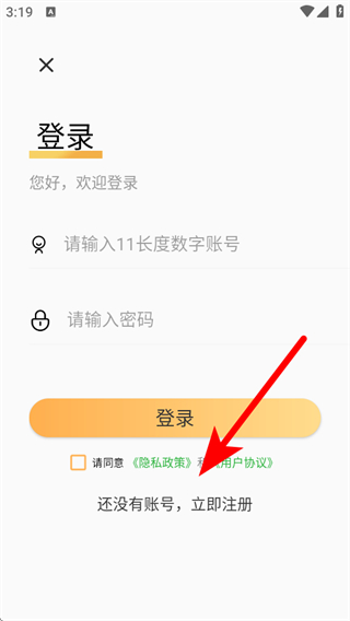3、在登錄頁(yè)面,點(diǎn)擊還沒有賬號(hào),立即注冊(cè),進(jìn)入注冊(cè)頁(yè)面。
