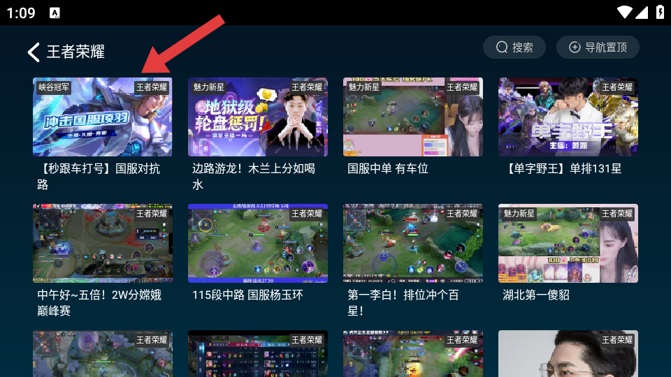 4、進(jìn)入對(duì)應(yīng)游戲頁面后,即可瀏覽該游戲的直播視頻,選擇感興趣的內(nèi)容觀看。