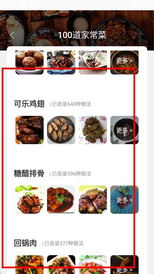 2、進入100道家常菜頁面后,選擇想做的菜品,比如可樂雞翅。