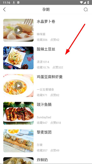 3、進入孕期菜譜列表后,選擇心儀的菜譜,即可查看具體做法。