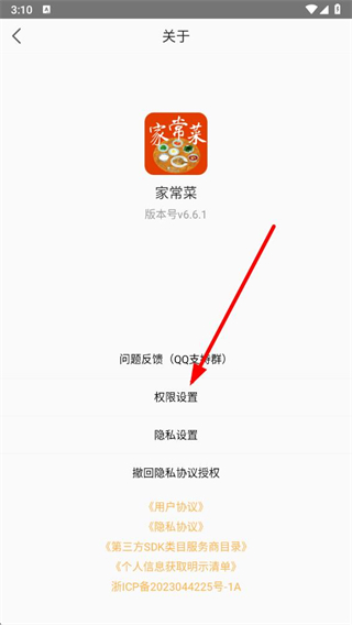 3、在關于界面里,找到權限設置選項并點擊,進入權限相關的設置操作界面。