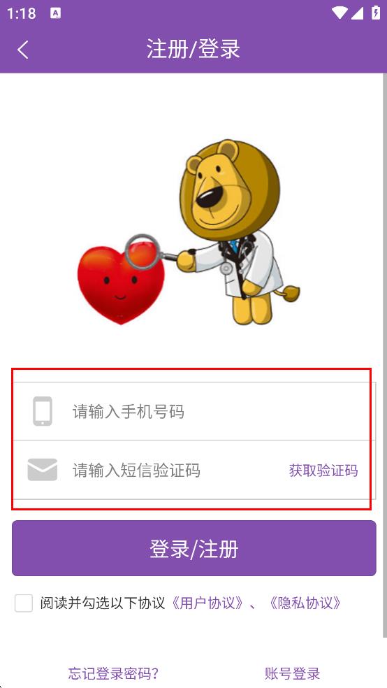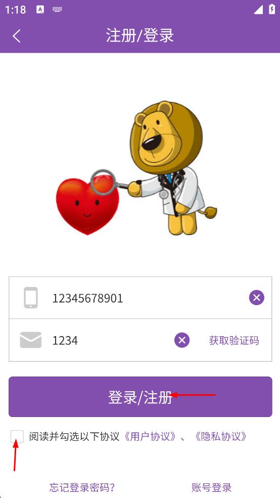 4、勾選閱讀并勾選以下協(xié)議用戶協(xié)議,隱私協(xié)議,點擊“登錄/注冊”按鈕完成登錄。