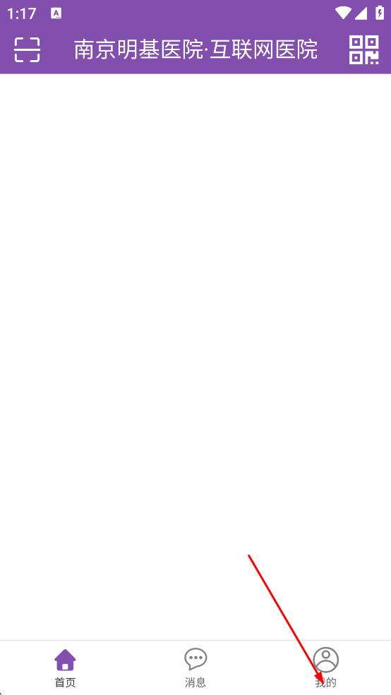 1、打開南京明基醫(yī)院互聯(lián)網(wǎng)醫(yī)院,進入主界面后,點擊右下角“我的”,進入“我的”頁面。