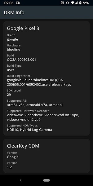 此應用程序?qū)@示來自Android Media Framework和MediaDrm API的數(shù)字版權管理(DRM)模塊的信息。