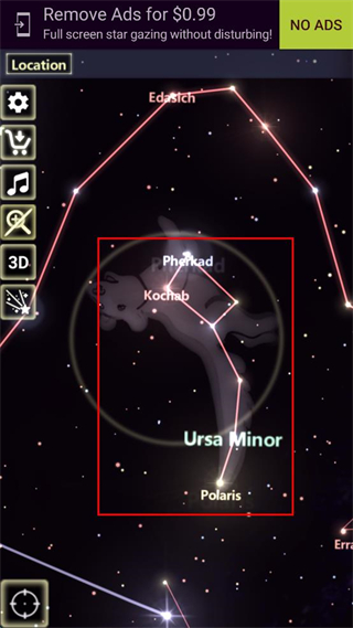 4、切換到顯示Ursa Minor等星座的界面,查看該星座對應(yīng)的星體及標(biāo)識信息。