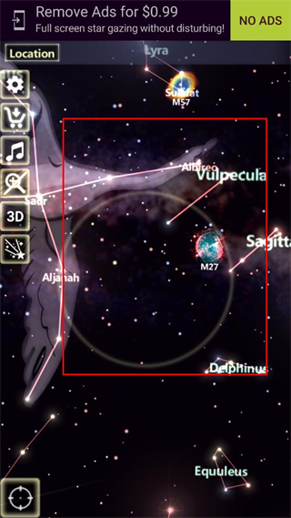 3、繼續(xù)切換界面,查看包含Vulpecula等星座的區(qū)域,同時留意顯示的星云標(biāo)識。