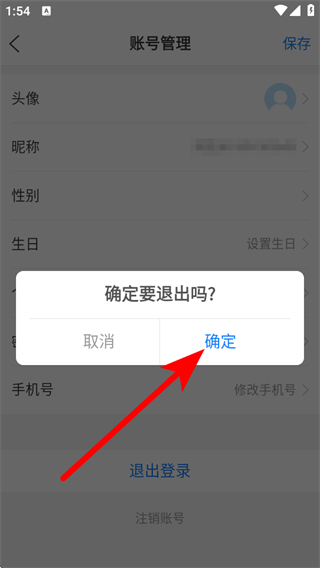 4、在系統(tǒng)的提示框中,需要點(diǎn)擊確定的按鈕,完成賬號(hào)退出操作。