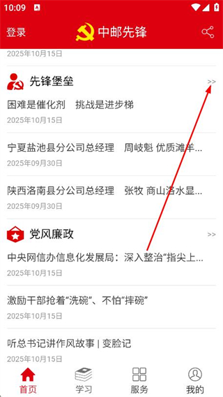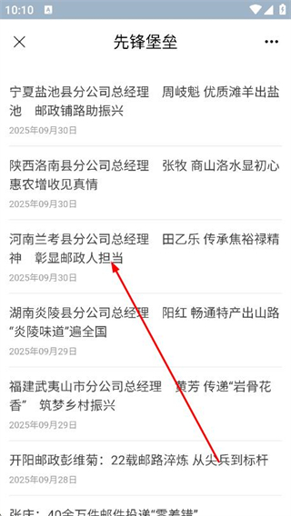 1、打開中郵先鋒,進入首頁后下滑選擇需要的板塊。
