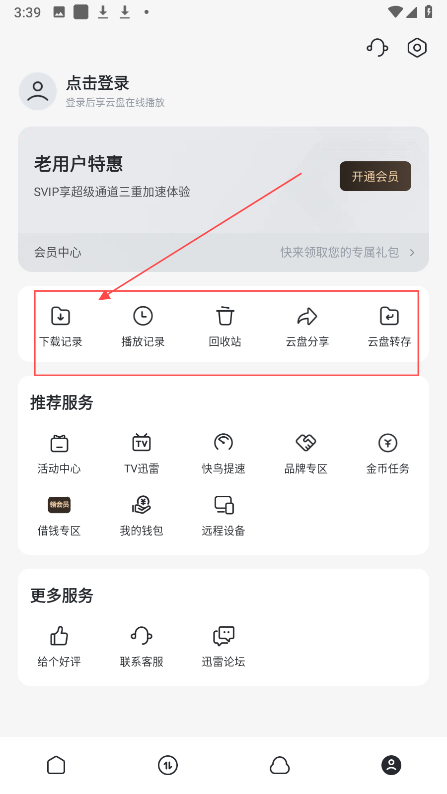 注:手機(jī)迅雷云盤是內(nèi)置在迅雷app中的。