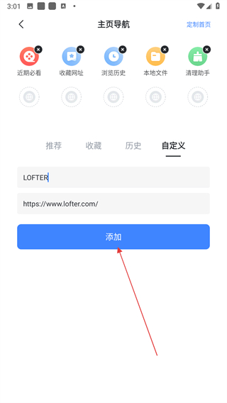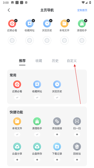2、在主頁(yè)導(dǎo)航頁(yè)面,點(diǎn)擊自定義。