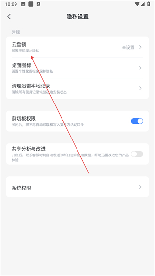 3、在隱私設(shè)置頁(yè)面中,找到云盤鎖選項(xiàng)并點(diǎn)擊。