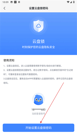 5、在彈出的頁(yè)面中,點(diǎn)擊開(kāi)始設(shè)置云盤鎖密碼。