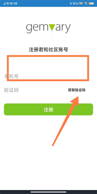2、在注冊(cè)頁(yè)面,輸入手機(jī)號(hào)碼后點(diǎn)擊獲取驗(yàn)證碼。