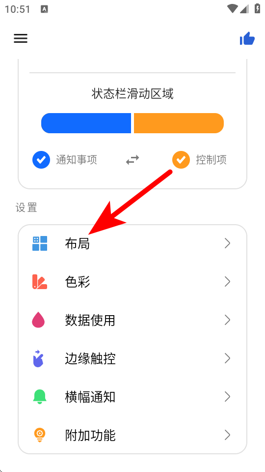 1、在設(shè)置頁面,點(diǎn)擊布局選項(xiàng),進(jìn)入布局設(shè)置界面。