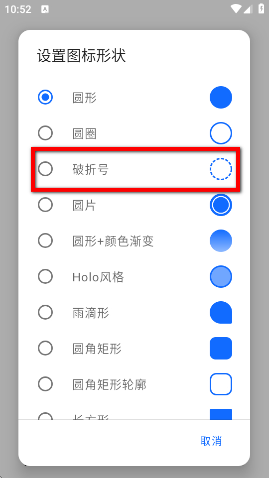 3、在形狀選擇菜單中,選擇想要的圖標(biāo)形狀,即可完成圖標(biāo)形狀設(shè)置。