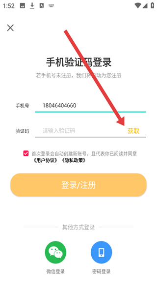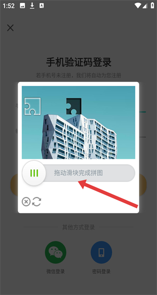 4、拖動(dòng)滑塊完成拼圖驗(yàn)證,獲取并輸入驗(yàn)證碼后,點(diǎn)擊登錄/注冊(cè)按鈕,完成賬號(hào)登錄或注冊(cè)操作。