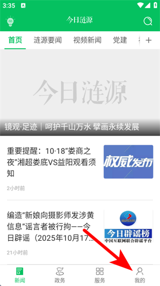 1、在今日漣源的首頁(yè),點(diǎn)擊底部我的按鈕,進(jìn)入個(gè)人的頁(yè)面。