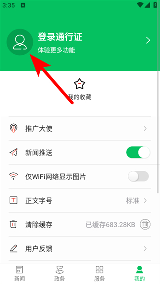 2、在個(gè)人的頁(yè)面,點(diǎn)擊登錄通行證按鈕,進(jìn)入登錄的界面。