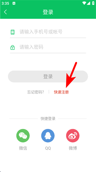 3、在登錄的界面,我們需要點(diǎn)擊快速注冊(cè),進(jìn)入快速注冊(cè)的頁(yè)面。