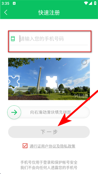 4、在頁(yè)面輸入手機(jī)號(hào)碼,完成驗(yàn)證后點(diǎn)擊下一步,按流程完成賬號(hào)注冊(cè)操作。