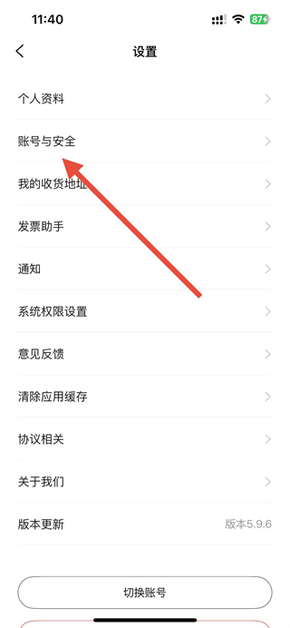 3、在設(shè)置頁面中,找到賬號與安全選項(xiàng)并點(diǎn)擊,進(jìn)入賬號安全相關(guān)配置頁面。