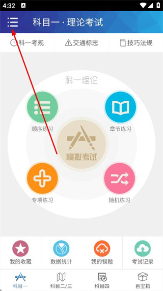 1、打開駕考通駕照,點擊左上角的圖標(biāo)打開側(cè)邊欄菜單。