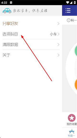 2、在側(cè)邊欄菜單中,找到并點擊上方的選擇科目選項。