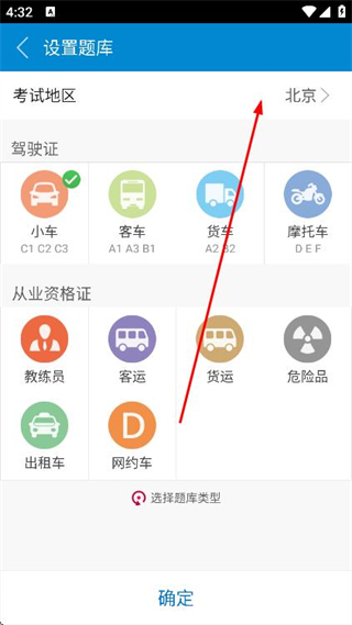 3、進(jìn)入設(shè)置題庫頁面后,點擊考試地區(qū)右側(cè)顯示地區(qū)名稱的位置。