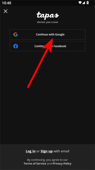 3、在登錄選擇界面,點(diǎn)擊ContinuewithGoogle選項(xiàng),即可通過谷歌賬號進(jìn)行登錄。