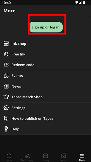 1、在Tapas界面,點(diǎn)擊右下角More選項(xiàng),進(jìn)入更多功能頁面。