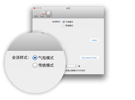 設計風格保留個性的同時,追求與 Mac 風格一致化,用戶可以自定義氣泡模式,讓對話更加真實。同時去掉不必要的內容,保持功能多樣化特性,尊重傳統(tǒng)與追求創(chuàng)新用心呈現(xiàn)。