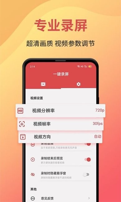 2、 錄屏懸浮窗、前置鏡頭快捷操作簡單方便;