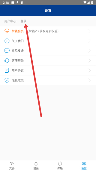 2、在進入到設(shè)置頁面后,可以點擊上方登錄按鈕,準備進行登錄操作。