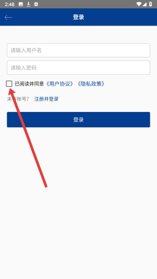 3、在開始登錄前,需要先點擊方框勾選已閱讀并同意按鈕后操作。