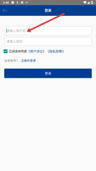 4、在勾選好同意按鈕后,點擊輸入框依次填寫用戶名和密碼后,點擊登錄按鈕即可完成登錄操作。
