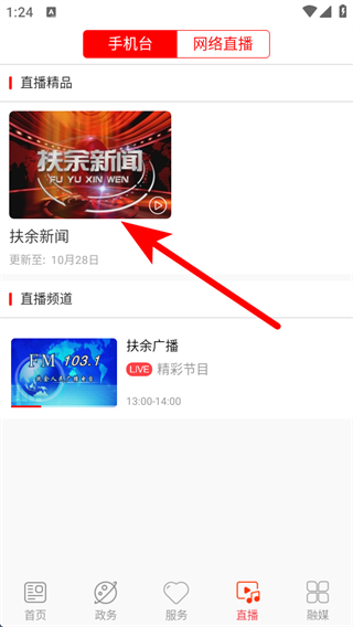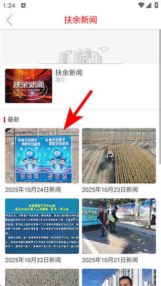 2、在直播板塊頁面,點(diǎn)擊扶余新聞,進(jìn)入新聞視頻列表展示頁面。