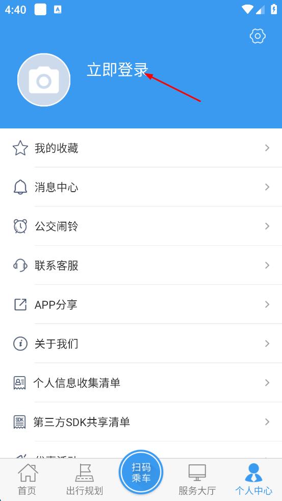 2、在“個人中心”頁面,點擊上方“立即登錄”選項。