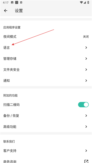 3、在設置頁面里,找到語言選項并點擊,進入語言選擇界面。
