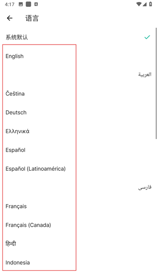 4、在語言選擇界面的列表中,選擇需要的語言即可完成語言更改。