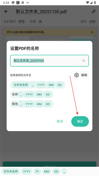 3、在彈窗中,可修改文件名,然后點擊確定。
