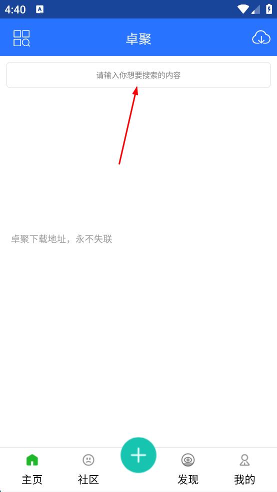 2、網(wǎng)絡切換成功后,進入卓聚APP主頁,點擊上方搜索框,準備輸入搜索內(nèi)容。