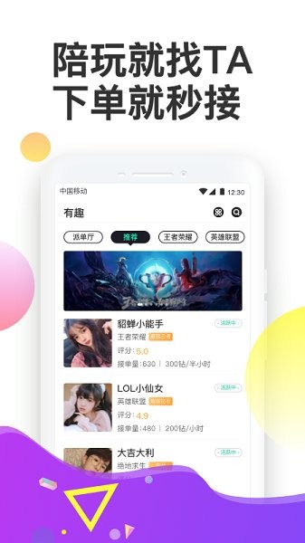 【有趣】孤獨、寂寞算什么!根據(jù)喜好找到TA!游戲組隊開黑帶飛,吃雞陪玩,王者組隊開黑,英雄聯(lián)盟開黑組隊陪玩,同城約拋,約會,哄睡點唱、花樣鬧鐘,你想要的全都有~