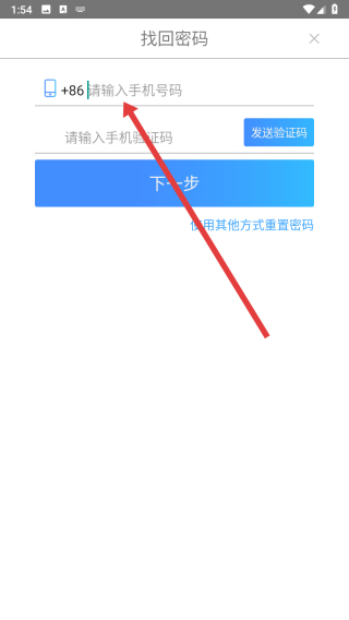 2、跳轉到找回密碼頁面,可以點擊上方輸入填寫手機號碼,以便發(fā)送驗證碼完成后續(xù)操作。